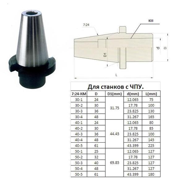 Втулка переходная с хв-ком 7:24-30 на КМ1 для станков с ЧПУ со сквозным отверстием ГОСТ 25827 исп.2 для концевых фрез