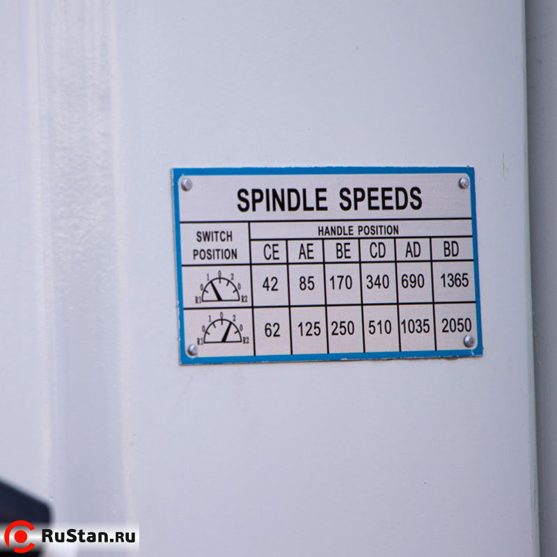 Скорость вращения шпинделя 42, 62, 85, 125, 170, 250, 340, 510, 690, 1 035, 1 365, 2 050 об/мин